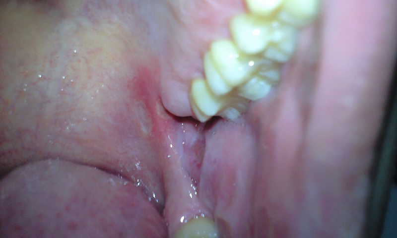 上の奥歯と下の奥歯を繋ぐような箇所に出来ました。